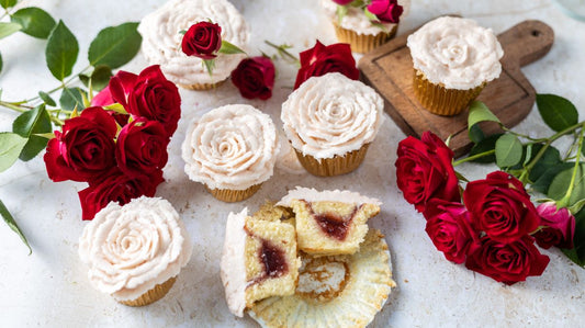 Strawberry Rhubarb Filled Rose Cupcakes