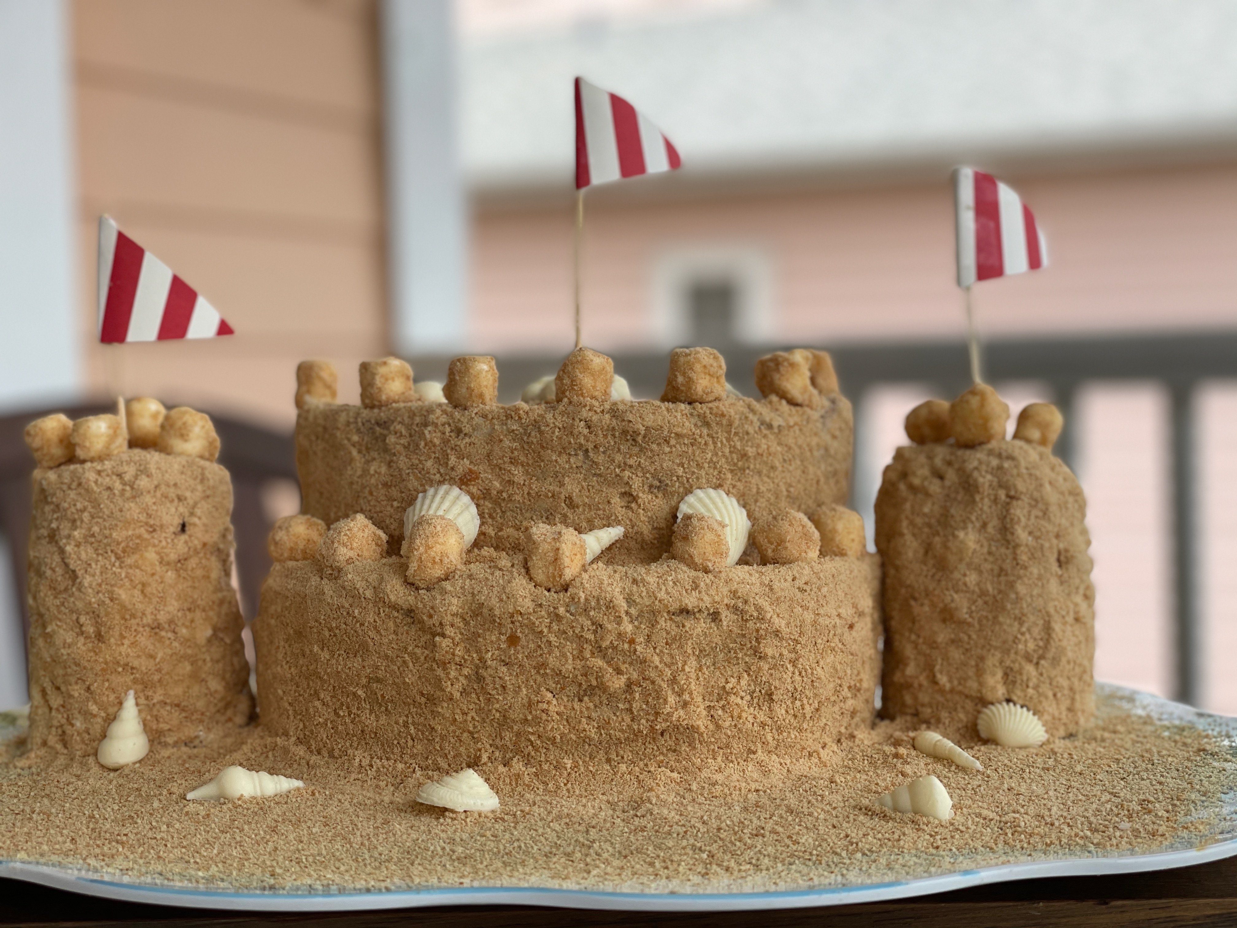 Thoroughly cover your cake in frosting to keep the cookie crumb sand from falling off. It can be difficult to stick sand on the side of your cake. But with enough frosting you can keep the crackers stuck to the cake! Be sure to add the cookie crumbs right after frosting. They stick much better to fresh frosting than to frosting that has had time to dry.